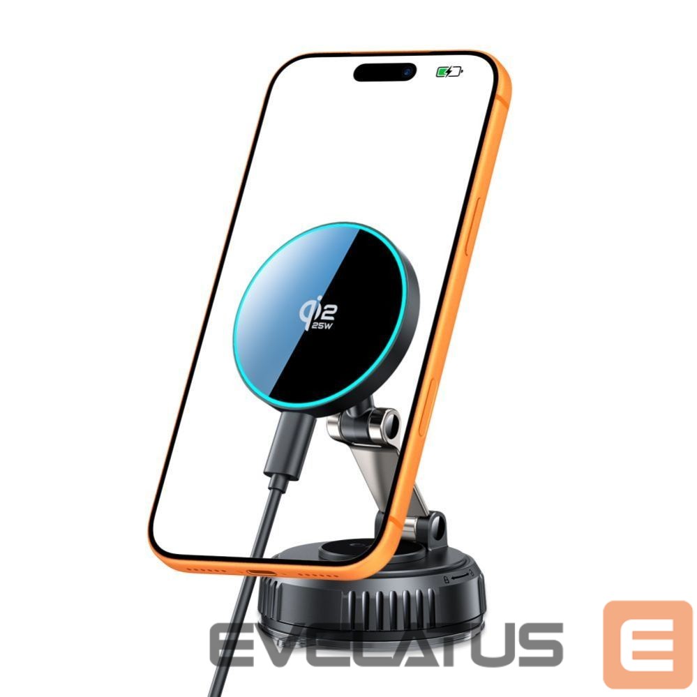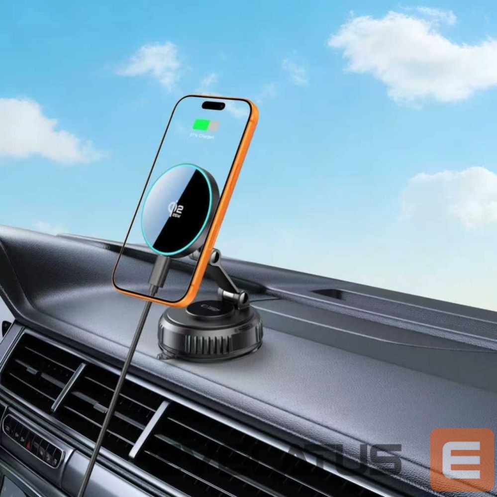 The holder with an adjustable arm allows you to precisely position your phone at an optimal viewing angle, and the strong magnet ensures a secure hold while driving, even on bumps. 25W charging means your smartphone's battery is quickly recharged while traveling, without the need for a cable. Simply hold your phone close to the charger, and the magnets will automatically adjust it to the perfect position.