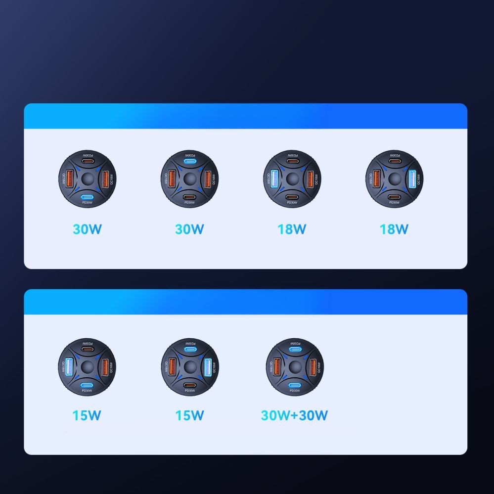 - USB-C1 + USB-C2 30W + 30W