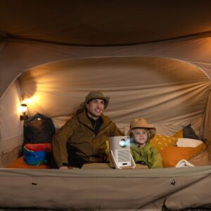 The Yaber T2 Plus is a projector that goes a step further by offering a built-in battery that allows you to use the device for 2.5 hours without having to plug it into a socket. This feature makes it the perfect solution for mobile projections anywhere, whether outdoors, in the open air or while traveling.