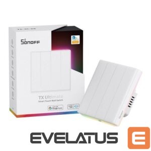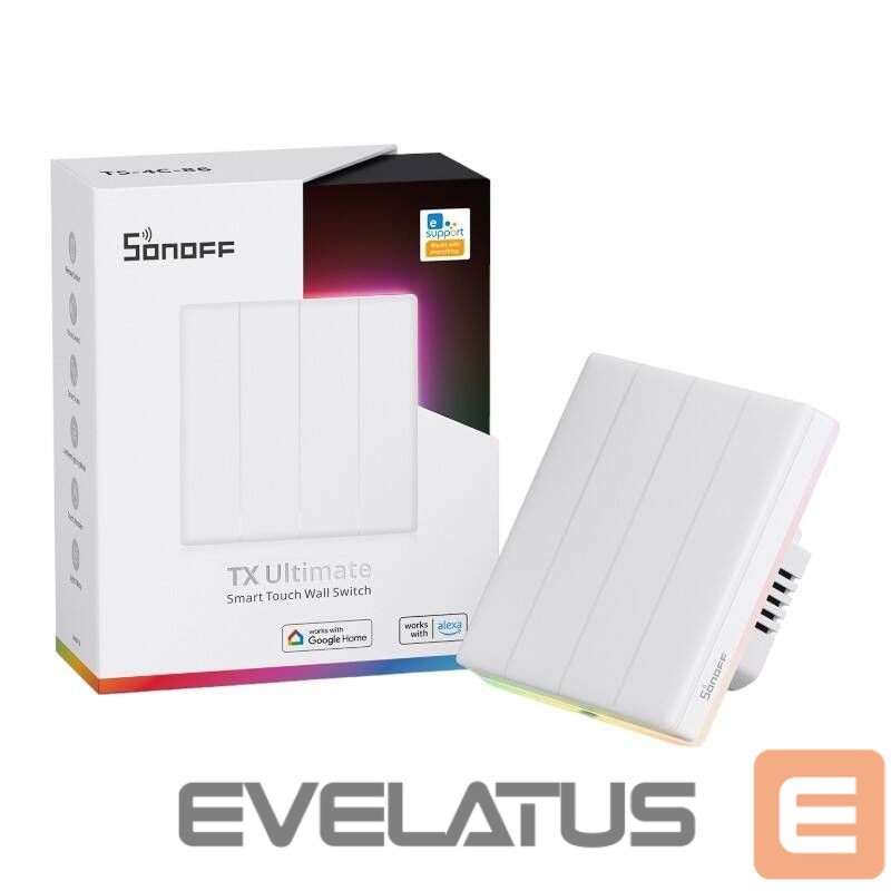 Create a smart home with Sonoff. The TX T5 4C is a 4-channel wall switch that allows you to control your lighting conveniently. You can also control it remotely using voice commands or the eWeLink app. What’s more, the product offers a timer function and colorful LED backlighting that you can customize. You can also personalize the look of the switch using the color panels (not included).