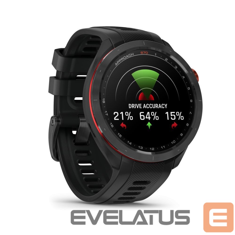 Nutikell Garmin Approach S70 – 47 mm Black/Red Ceramic Bezel with Black Silicone Band