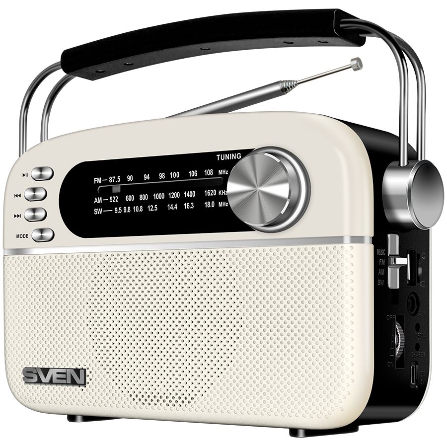 juhtmega kõlarid Sven Speaker SVEN SRP-505, white (3W, Bluetooth, FM/AM/SW, USB, microSD, AUX, battery)
