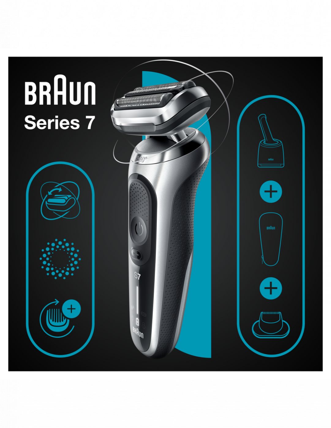 Raseerijad Braun Shaver 71-S7200cc Operating time (max) 50 min, Wet & Dry, Silver/Black