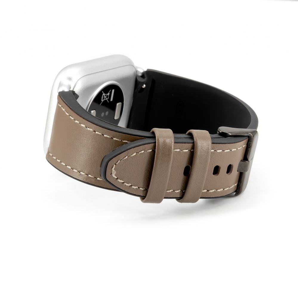 Rihm Connect 20mm Silicone Patch Leather Watch Strap (130mm M/L) Taupe