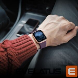 - Precise fit: The band fits snugly over the Apple Watch case, highlighting the watch’s modern look.