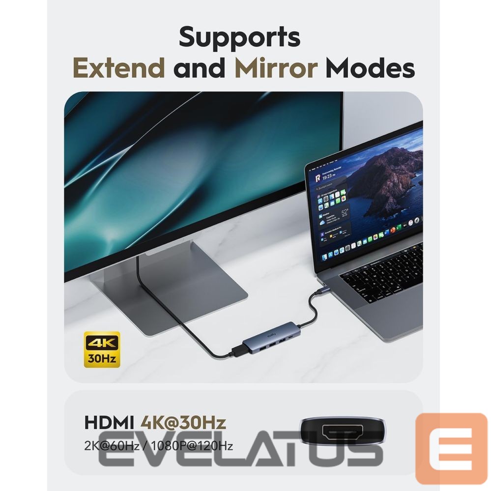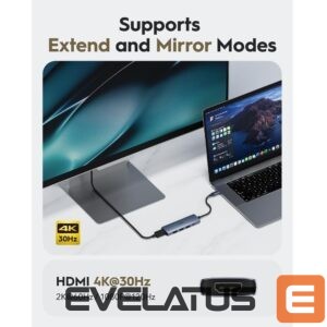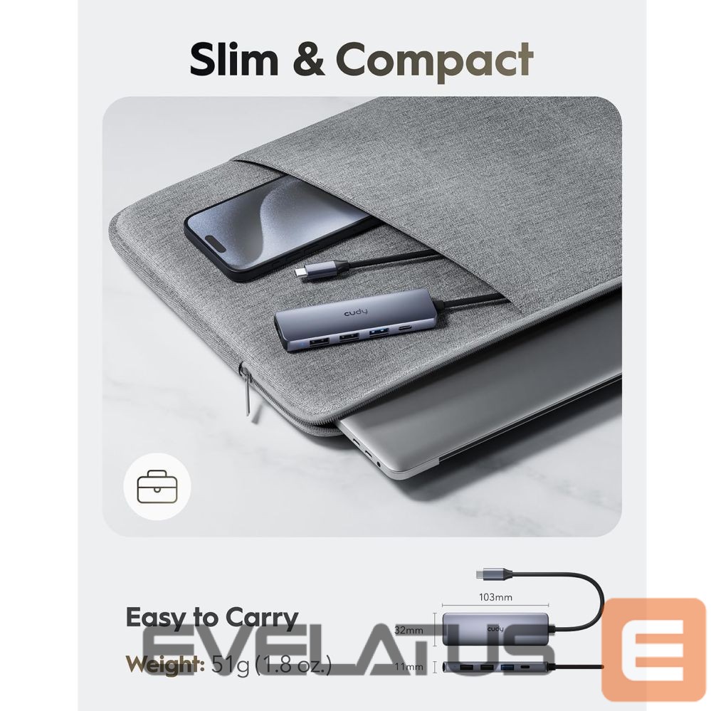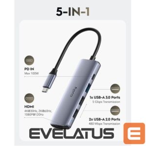 Cudy UH405 PortMate on kompaktne ja võimas USB-C hub, mis muudab ühe USB-C pordi mitmeotstarbeliseks töökohaks. 4K HDMI väljundiga, kiire USB-A 3.0 ühendusega, tagasiühilduva USB 2.0 ja USB-C Power Delivery-iga on see 5-in-1 adapter ideaalne sülearvutitele, tahvelarvutitele ja nutitelefonidele, mis toetavad DisplayPort Alt Mode.