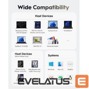 Toetab kuni 3840×2160 @ 30Hz, ideaalne esitlusteks, monitorideks või voogedastamiseks ühilduvatelt seadmetelt.