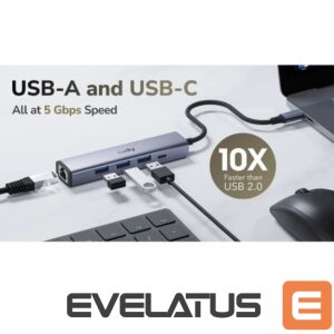 Cudy UH605 PortMate on väga praktiline 5-in-1 USB-C hub, mis pakub sujuvat juhtmega võrguühendust koos mitmete USB laienduste portidega. Gigabit Etherneti, kolme USB-A 3.0 porta ja USB-C toite sisendi abil on see kompaktsus hub ideaalne professionaalidele, kes sõltuvad stabiilsetest LAN-ühendustest ja mitmest USB-perifeeriast oma tootlikkuse tagamiseks.
