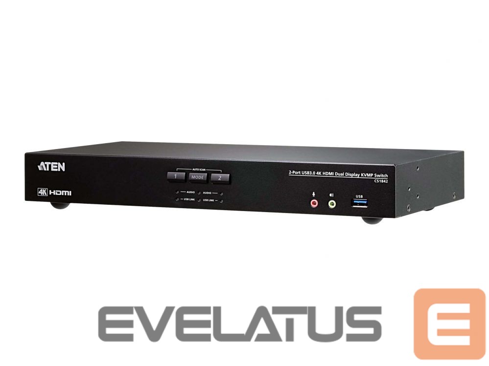 Server – muud tarvikud Aten CS1842-AT-G 2-Port True 4K HDMI Dual-View KVM Switch with Audio & USB 3.0 Hub |