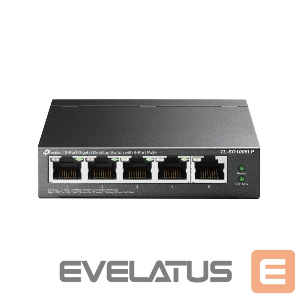 Server – muud tarvikud TP-Link Switch TL-SG1005LP Unmanaged, Desktop, 10/100/1000 Mbit/s, Ethernet LAN (RJ-45) ports 5, PoE+ ports quantity 4, Power supply type External