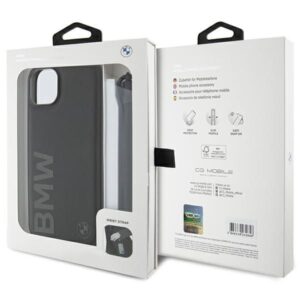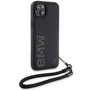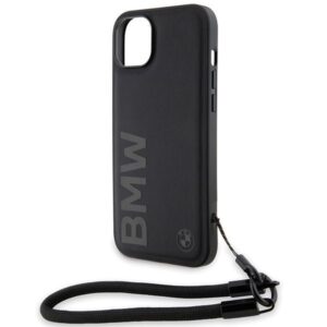 Tagakaaned BMW BMW Signature Leather Wordmark Cord Case for iPhone 15/14/13 – Black