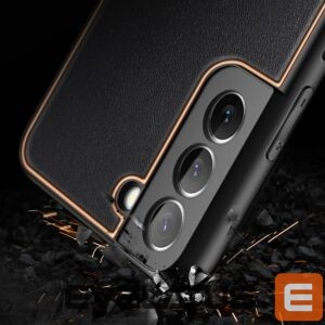 Yolo is a series of elegant phone cases designed by the Dux Ducis brand. The main part of the cover is a flexible TPU casing, which is gentle on the phone and prevents scratches on the casing. Next is a rigid cap that strengthens the flexible housing. It is additionally covered with a metallic coating that gleams like polished metal. The last layer is made of lacquered ecological leather. All these elements make up the luxurious appearance of the Dux Ducis Yolo cover.