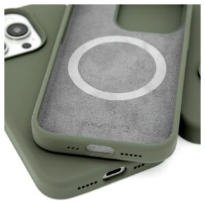 Evelatus Premium MagSafe ümbris on valmistatud kvaliteetsest silikoonist, mis on saadud vedelast silikoonist (Liquid silicone). See protsess tagab vastupidava, paindliku ja meeldiva puudutusega materjali soft touch kattega. Ümbrise sisekülg on vooderdatud peene mikrokiust kangaga, mis kaitseb täiendavalt sinu telefoni korpust kriimustuste eest. Sisseehitatud magnet on sujuvalt ümbrise disaini integreeritud, tagades MagSafe tarvikute kiire ja mugava kinnitamise. Ergonoomiline disain tagab telefoni mugava ja kindla kasutamise, samas kui soft touch kate lisab täiendavat mugavust.