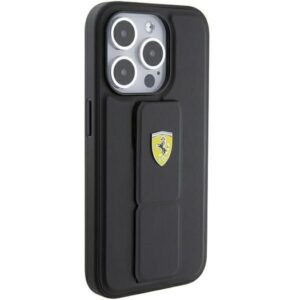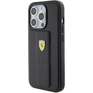 Tagakaaned Ferrari Ferrari Grip Stand Metal Logo case for iPhone 15 Pro – black