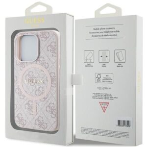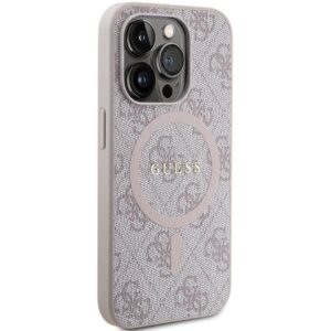Tagakaaned Guess Guess 4G Collection Leather Metal Logo MagSafe Case for iPhone 14 Pro Max – Pink