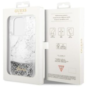 The collection is distinguished by a non-obvious and cool marble motif, which has been additionally emphasized by glitter particles with sequins shimmering in the light, which change their arrangement under the influence of changing the angle of inclination. An additional decoration is the iconic golden Guess logo in vintage style, which emphasizes the sophisticated aesthetics of the case. The Guess logo has been hot embossed and then coated with a delicate TPU layer, which makes it resistant to abrasion and guarantees a durable and aesthetic appearance for a long time. The golden Guess logo is not only a beautiful decoration, but also a confirmation of the excellent quality and authenticity of the products for which this brand is responsible.