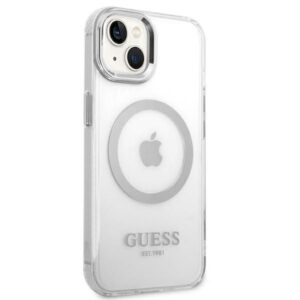 The case will perfectly emphasize the unique design of your iPhone, it has been decorated with silver elements such as the frame around the lenses, buttons and the Guess logo. The case features a magnetic ring compatible with the MagSafe wireless charger for quick and easy charging. The magnetic ring fits perfectly with the color of the cover.