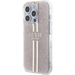 Tagakaaned Guess Guess IML 4G Gold Stripe case for iPhone 14 Pro Max – pink