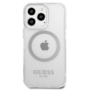 The case will perfectly highlight the unique design of your iPhone, it is decorated with silver elements such as the frame around the lenses, buttons and the Guess logo. The case is equipped with a magnetic ring compatible with the MagSafe wireless charger, ensuring quick and easy charging. The magnetic ring perfectly matches the color of the cover.