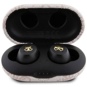 These elegant headphones will delight people with even the most refined taste. The top layer of the charging case is covered with delicate ecological leather, which is additionally decorated with a high-quality 4G print – thanks to this, the product acquires a refined and elegant character. An additional decoration is a golden emblem with the Guess logo, which confirms the highest quality and authenticity of the product.