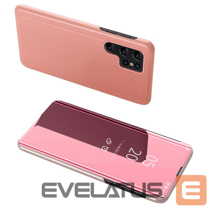 Shiny Samsung Galaxy S23 Ultra flip case from the Clear View Case series in pink