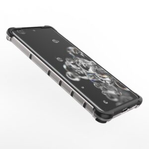 - A hybrid case with a rigid back and a flexible frame.