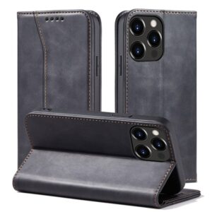 iPhone 14 Pro Max Magnet Fancy Case Flip Cover with Wallet Function and Kickstand Black