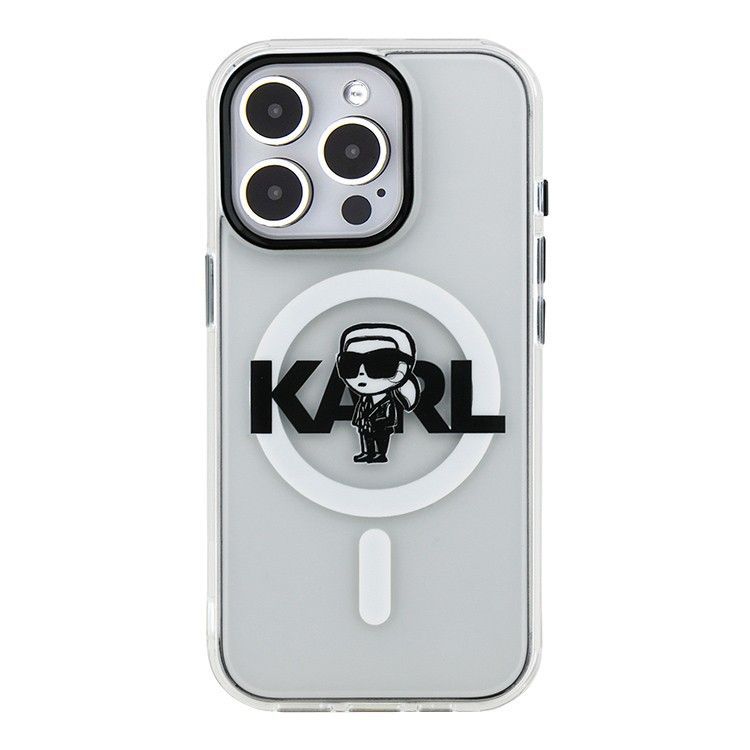 Tagakaaned Karl Lagerfeld Apple iPhone 15 Pro Max Silicone case with Magsafe IML KL Sketch Logo Transparent