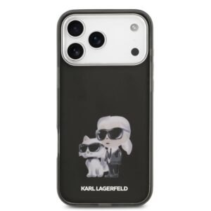 Tagakaaned Karl Lagerfeld Apple iPhone 17 Pro Max Silicone IML Aquarelle Karl and Choupette Case Black