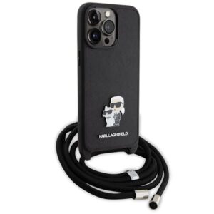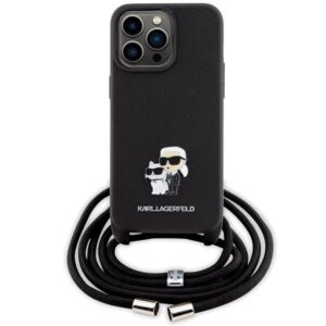 Tagakaaned Karl Lagerfeld Karl Lagerfeld Crossbody Saffiano Metal Pin Karl & Choupette Case for iPhone 15 Pro Max – Black