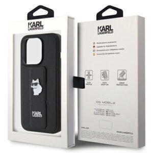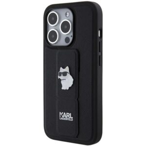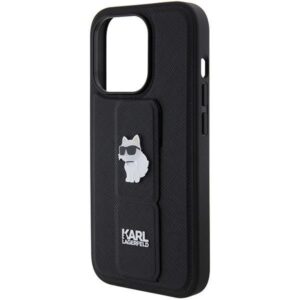 Tagakaaned Karl Lagerfeld Karl Lagerfeld Gripstand Saffiano Choupette Pins case for iPhone 14 Pro Max – black