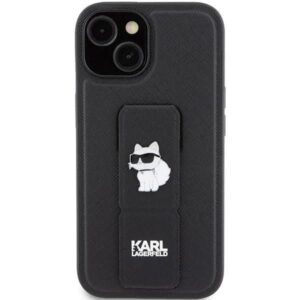 Tagakaaned Karl Lagerfeld Karl Lagerfeld Gripstand Saffiano Choupette Pins Case for iPhone 15 Plus / 14 Plus – Black