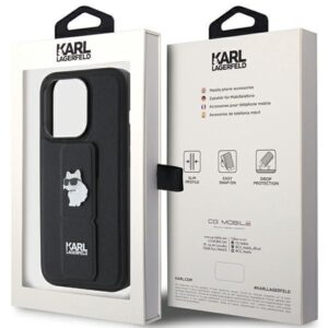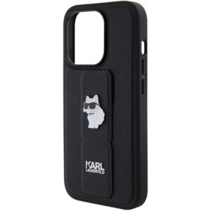 Tagakaaned Karl Lagerfeld Karl Lagerfeld Gripstand Saffiano Choupette Pins case for iPhone 15 Pro – black