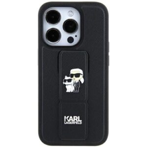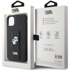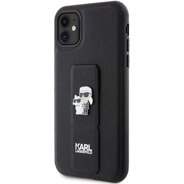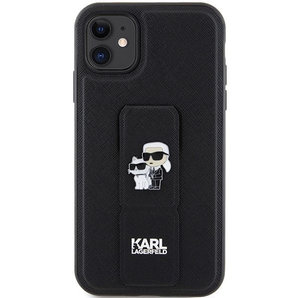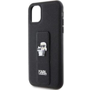 Tagakaaned Karl Lagerfeld Karl Lagerfeld Gripstand Saffiano Karl&Choupette Pins case for iPhone 11 / Xr – black