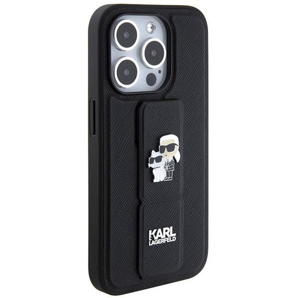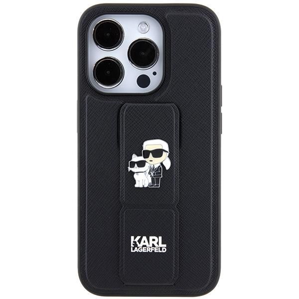 Tagakaaned Karl Lagerfeld Karl Lagerfeld Gripstand Saffiano Karl&Choupette Pins case for iPhone 14 Pro – black