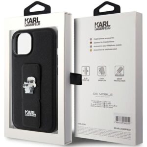 Tagakaaned Karl Lagerfeld Karl Lagerfeld Gripstand Saffiano Karl&Choupette Pins case for iPhone 15 – black