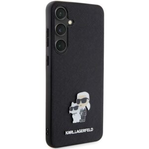 The Karl Lagerfeld Saffiano Karl&Choupette Pin collection is a perfect way to emphasize your attachment to this esteemed fashion house and give your iPhone a new design. High-quality ecological leather was used for production, which is nice and delicate to the touch. Additionally, on the back of the cover there is a large metal emblem with the image of Karl and his beloved cat, the beautiful Choupette. The metal emblem fits perfectly with the entire style of the cover, adding a distinctive character to it. Additionally, the luxurious appearance of this collection is complemented by the Karl Lagerfeld brand house logo, which also confirms the authenticity and highest quality of the product. This cover is a combination of style, protection and attractive appearance.