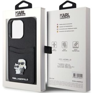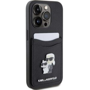 Tagakaaned Karl Lagerfeld Karl Lagerfeld Saffiano Cardslot Karl&Choupette Metal Pin case for iPhone 15 Pro – black