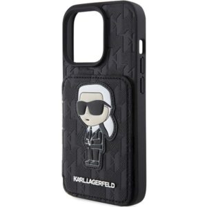 Tagakaaned Karl Lagerfeld Karl Lagerfeld Saffiano Cardslots and Stand Monogram Ikonik Patch case for iPhone 15 Pro Max – black