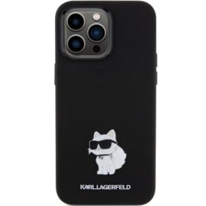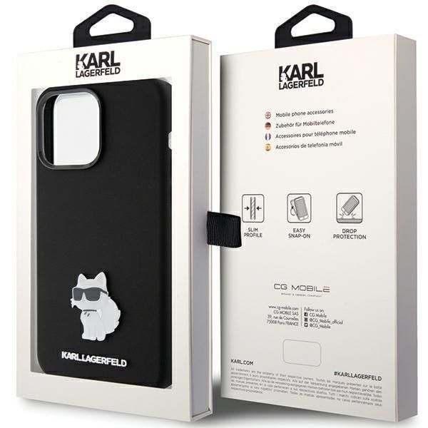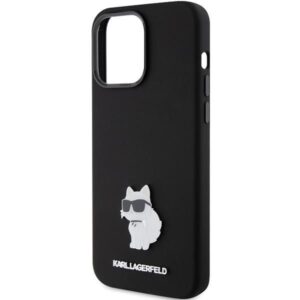 Tagakaaned Karl Lagerfeld Karl Lagerfeld Silicone Choupette Metal Pin case for iPhone 15 Pro Max – black
