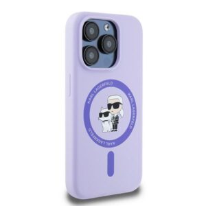 Tagakaaned Karl Lagerfeld Karl Lagerfeld Silicone Karl&Choupette Heads Ring MagSafe Case for iPhone 15 Pro – Purple