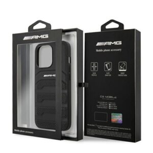 Tagakaaned Mercedes-Benz AMG AMHCP14LGSEBK iPhone 14 Pro 6.1 "black / black hardcase Leather Debossed Lines