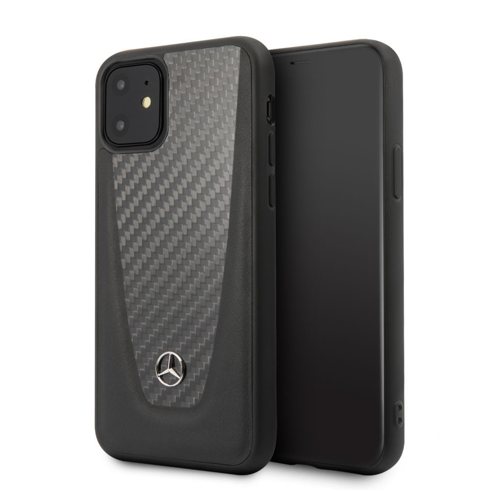 Tagakaaned Mercedes-Benz Apple iPhone 11 Hard Case Leather Carbon Fiber Black