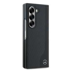 Tagakaaned Mercedes-Benz Mercedes Leather Wood Imitation MagSafe Case for Samsung Galaxy Z Fold 6 – Black