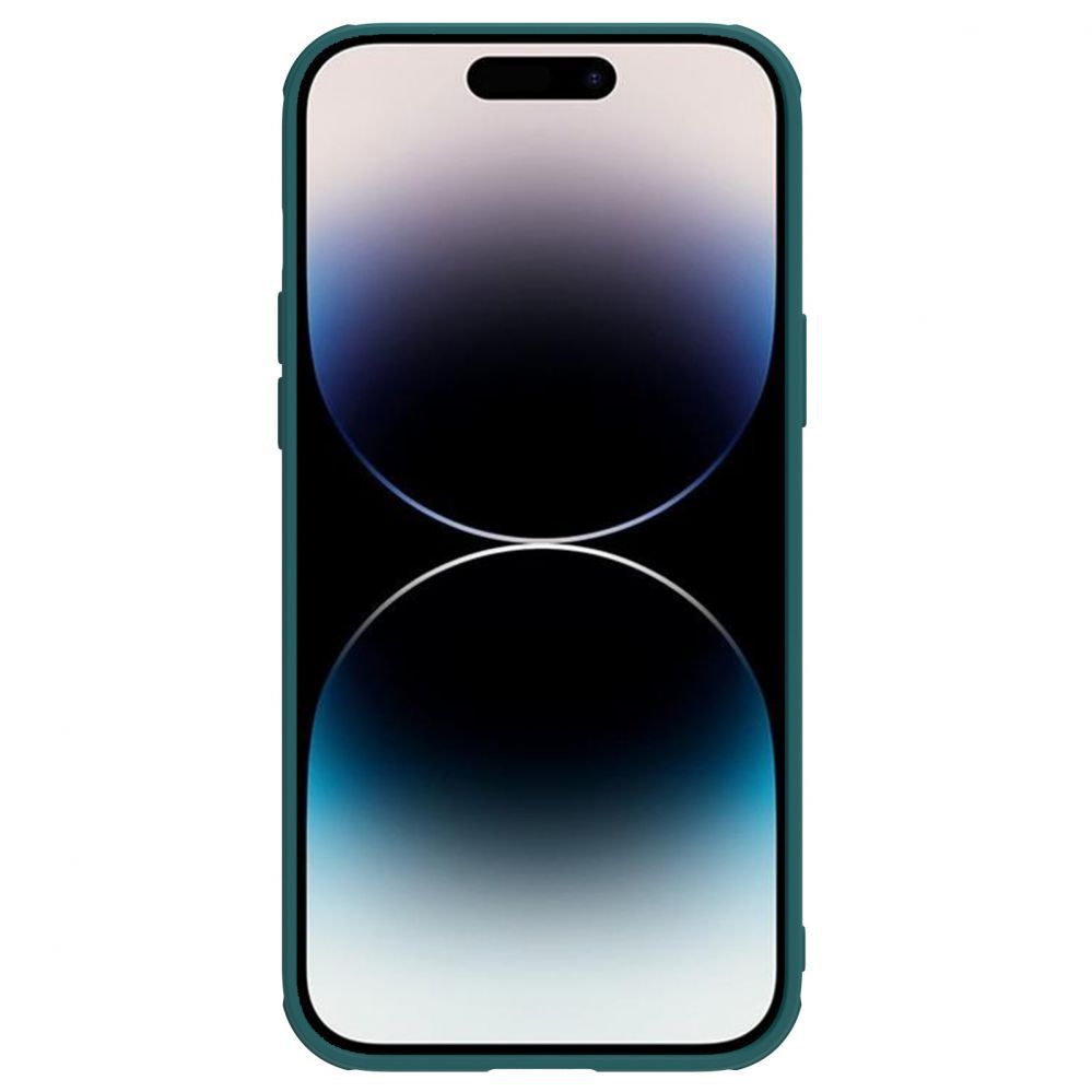 Armored iPhone 14 Pro Max case from the Nillkin CamShield Leather S Case series with camera cover in green
