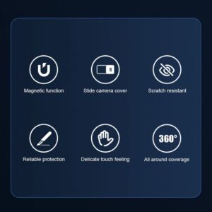 There is a sliding camera cover on the back of the case. Protects the camera glass against scratches during everyday use. When you need to record a video or take a photo, just slide the cover to reveal the lens.