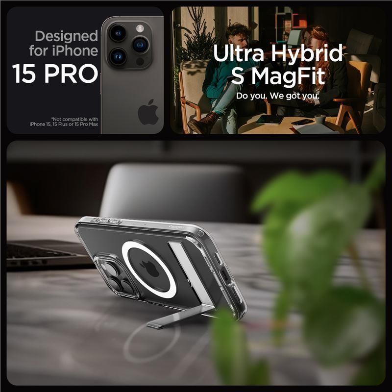 Spigen Ultra Hybrid S MagSafe Case with Stand for iPhone 15 Pro – Transparent