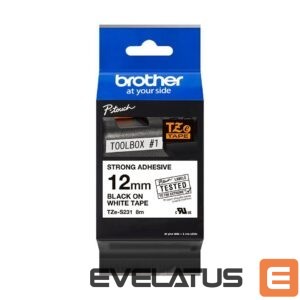 Tarvikud ja tarvikud Brother TZ-S231 Strong Adhesive Laminated Tape Black on White, TZe, 1.2 cm, 8 m