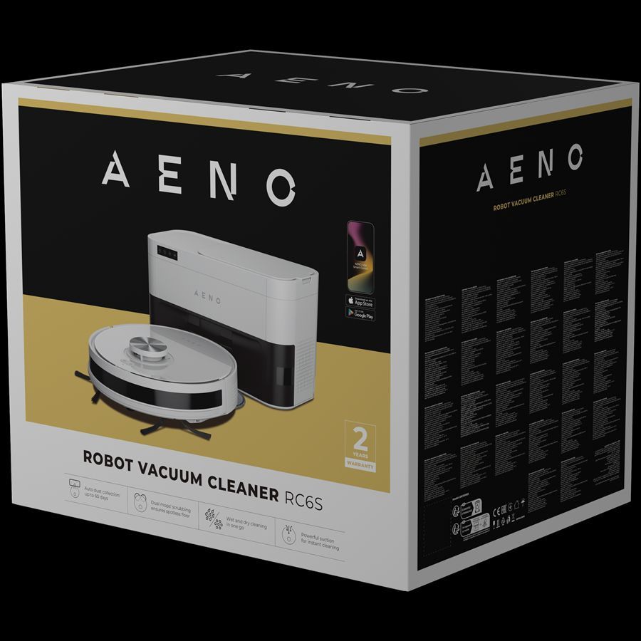 | Funkcijas | Infrared Sensor <br/>Collision Sensor <br/>Anti-Fall Sensor <br/>Gyro Sensor <br/>Single Room Mode <br/>Scheduled Cleaning <br/>Continuing Cleaning from the Same Place <br/>Smart Scenario Builder <br/>Room Mapping <br/>Virtual Wall <br/>Turbo Mode <br/>Spot Mode <br/>Automatic Dust Removal and Charging Station <br/>Equipped with 2 Side Brushes <br/>Steps overcoming 18 mm <br/>Smart Control AENO App (via wi-fi) <br/>Suction Power Adjustment: 4 modes (eco, medium, high, turbo) <br/>LiDAR (Laser Navigation) <br/>Auto Mode <br/>Cleaning History <br/>Voice Guidance with Sound Volume Control <br/>Wide range of ways to control: remote controller, smartphone, device buttons <br/>Saves up to 5 room maps <br/>2in1 tank capacity:230ml/180ml (water/dust) <br/>Dustbag automatically cleans, 3 bags included. 1 bag – 60 cleanings. Dust collector – 3000ml <br/>Wet Cleaning and vacuuming at the same time <br/>One device which replace multiple devices <br/>Ultrasonic sensor <br/>20 Sensors <br/>Precise mapping <br/>User-friendly AENO app <br/>3 Modes of Electronic Water flow (low, medium, high) <br/>Possibility to split/combine rooms on the map <br/>Cleaning area 120m2 on a full charge <br/>Removable main brush, hair removal accessory included <br/>Pre filter & HEPA <br/>Rotating mops for effective real wet cleaning <br/>Separate dust enlarged container for only dry vacuuming |
