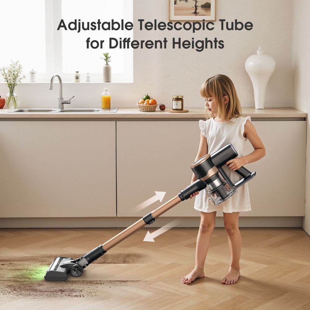 - V-kujuline Motoriseeritud Hari LED-iga: Põrandaotsik on varustatud ereda LED-valgustusega, mis valgustab tolmu mööbli all. Spetsiaalne V-kujuline harjarulliku disain vähendab juuste takerdumist ja suunab mustuse tõhusalt imemisavasse.